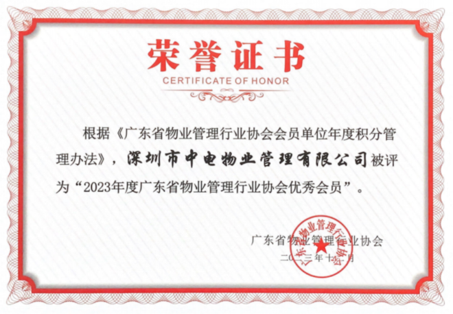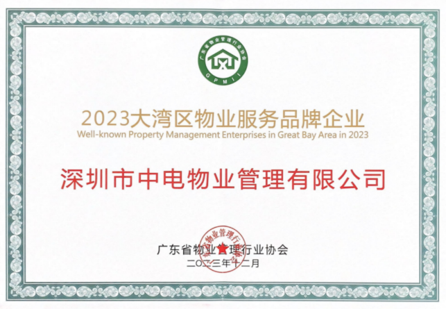 會上(shàng),中電物業榮獲“2023廣東省物業服務(wù)綜合實力企業”“2023年大灣區物業服務(wù)品牌企業”“2023年度廣東省物業管理(lǐ)行業協會優秀會員(yuán)”3項獎項。