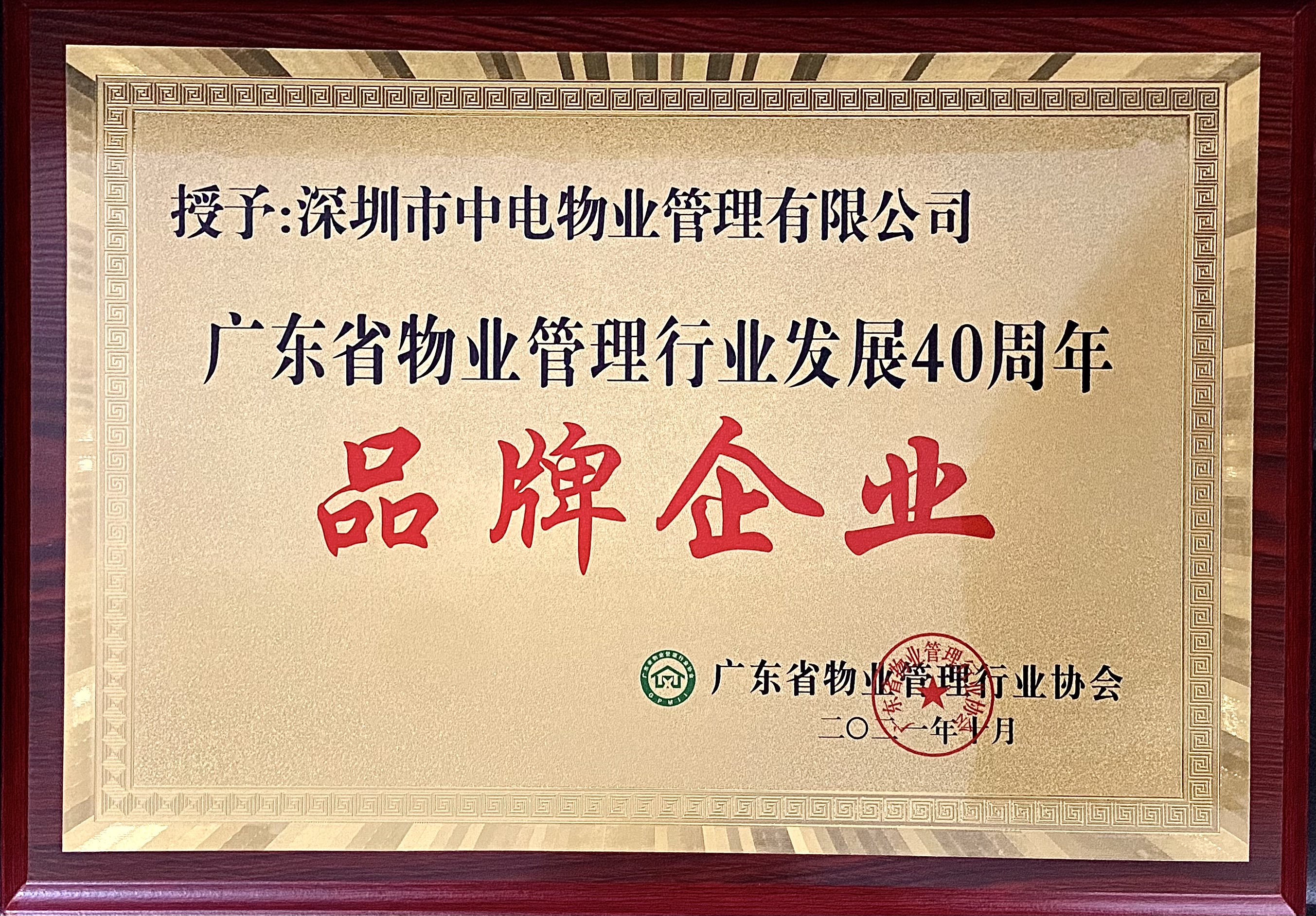 廣東省物業管理(lǐ)行業協會成立20周年“先進企業”獎狀
